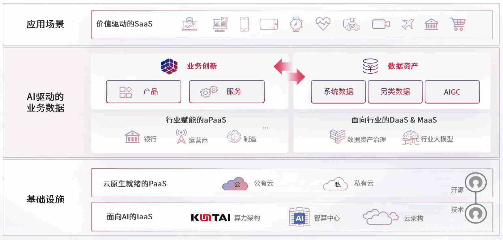 数字时代,,围绕企业数字化转型的关键要素,,,,z6com尊龙数码开创性的提出数云融合战略和技术体系框架,,,,着力在云原生、、、、数字原生、、、AI原生和信创产业上架构产品和服务能力,,,,为处在不同数字化转型阶段的快消零售、、、汽车、、、金融、、、医疗、、、政企、、、教育、、运营商等行业客户提供泛在的敏捷IT能力和融合的数据驱动能力,,,构建跨界融合创新的数字业务场景和新业务模式,,,助力企业级客户建立面向未来的核心能力和竞争优势,,全面推动社会的数字化、、、智能化转型升级。。。