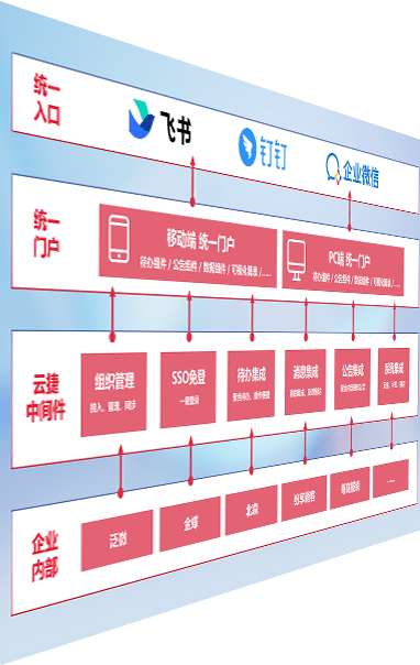 对协作平台提供支持服务,,支持企业应用与协作平台对接,,,包含组织同步、、消息集成、、、待办集成等。。。支持目前主流的协作平台:钉钉、、企微和飞书。。